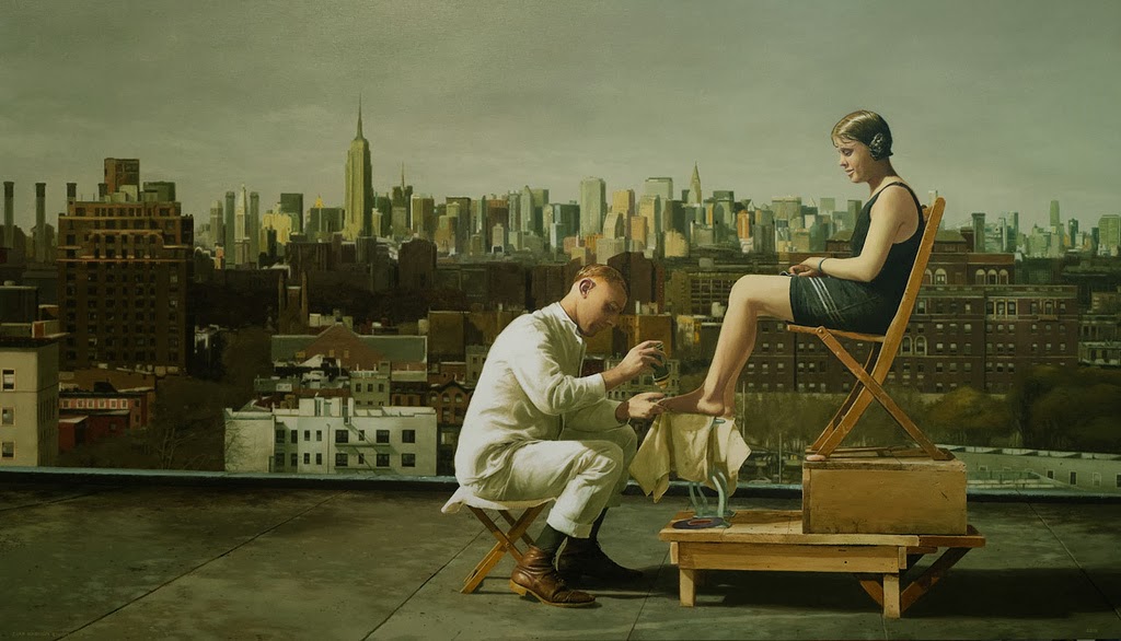 Las pinturas de Juan Martínez representan en general personajes, objetos y edificaciones de los años 1920´s y 1930´s.